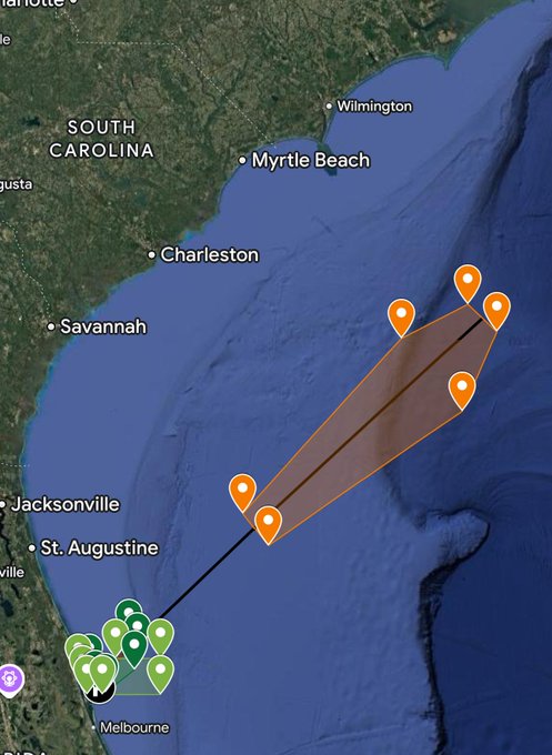 Falcon First Stage B1092-2 is vertical at SLC-40 with the classified NROL-69 payload ahead of launch tomorrow at 17:48 UTC. Weather is 90% GO. The target orbit appears to be ~65° inclined, which could hint that it's part of the Naval Ocean Surveillance System.