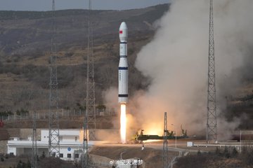 The satellite was launched at 10:12 a.m. (Beijing Time) and entered its preset orbit successfully. (Photo by Wang Yapeng/Xinhua)