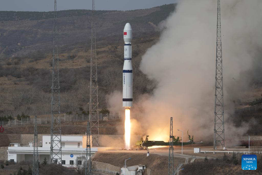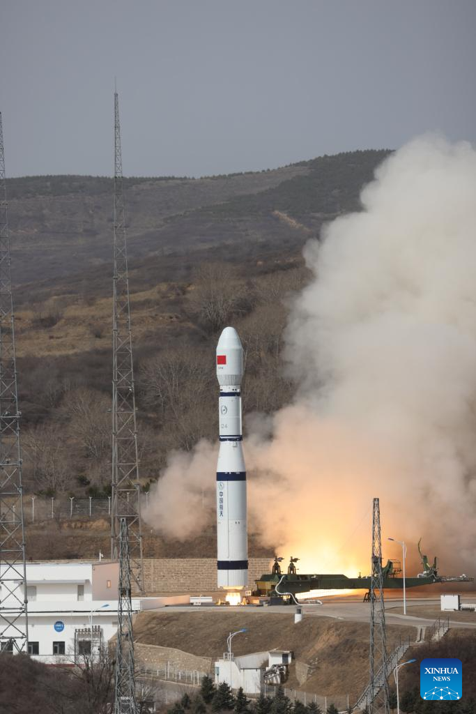 TAIYUAN, April 3 (Xinhua) -- China sent a new satellite into space on Thursday from the Taiyuan Satellite Launch Center in north China's Shanxi Province.
