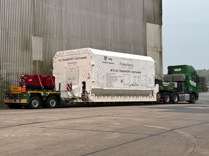 MTG-S1 and @CopernicusEU Sentinel-4 have safely reached Cape Canaveral harbour after their boat ride. Next step? Unloading and heading to the launch site.