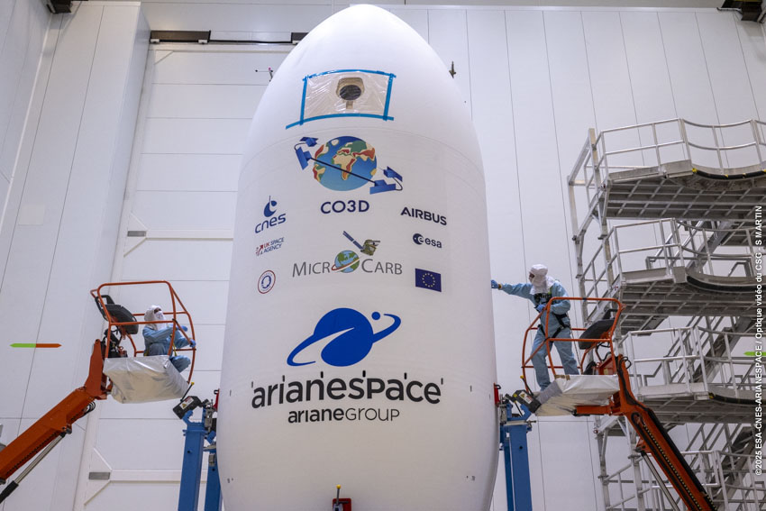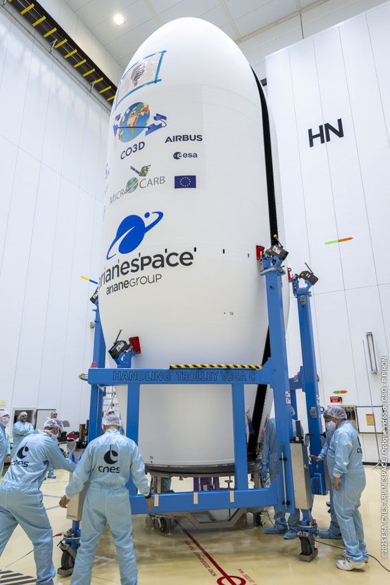 The 4 CO3D & MicroCarb are encapsulated inside VegaC's fairing at Europe's Spaceport.