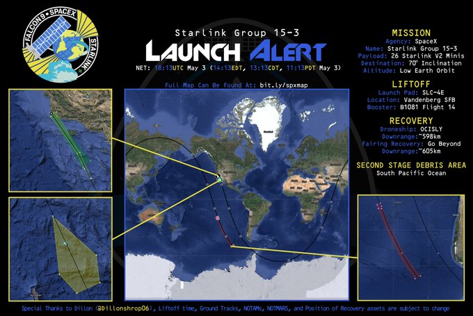 @SpaceX is scheduled to launch the @Starlink Group 15-3 mission from @SLDelta30 NET 18:13UTC May 3rd