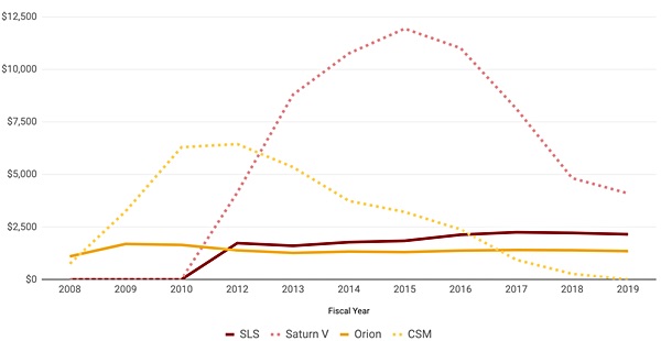 Если учитывать смежные программы, такие как Orion и инфраструктура EGS, общие затраты на Artemis