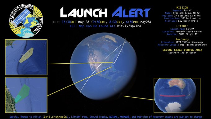 Well, now we move on from Flight 9 and get back into the rhythm of a @Starlink launch. @SpaceX is scheduled to launch the 10-32 mission from @NASAKennedy NET May28