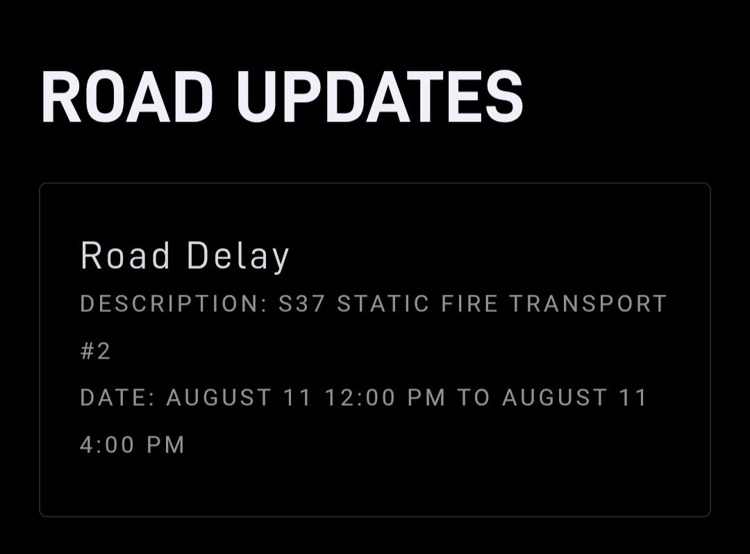 Starship S37 выкатили обратно для повторных тестов на Pad A. После замены одного из двигателей RVAC планируется провести только прогон турбин (spin prime). Скорее всего, без прожига, как и упоминалось выше.