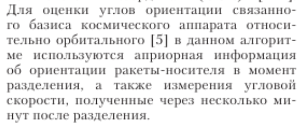 Цитата: cross-track от 05.06.2025 12:26:58А вот в случае, когда известна только ориентация ИКВ (т.е. частичная ориентация; ориентация одной оси - вертикали), это ничего не говорит о заданной ориентации спутника.