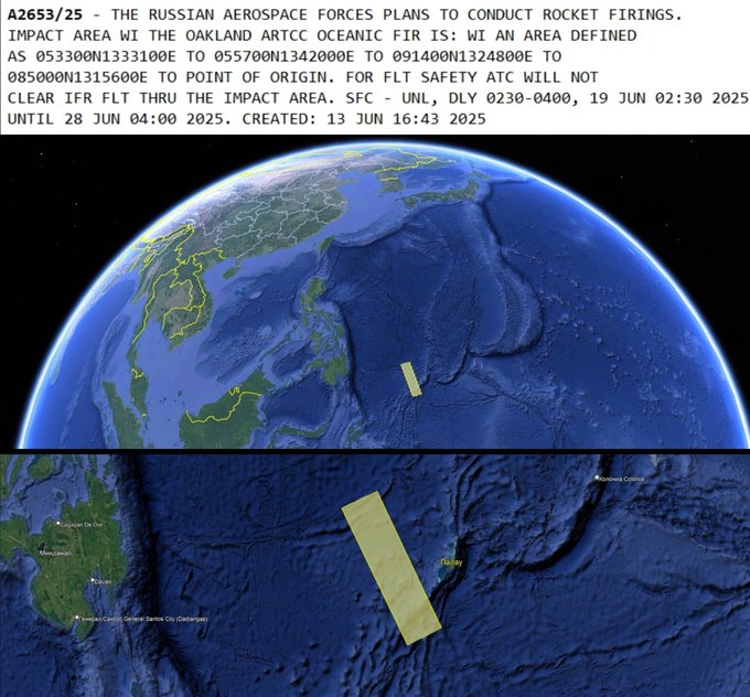 NOTAM на падение 3-й ступени в Филиппинском море:
