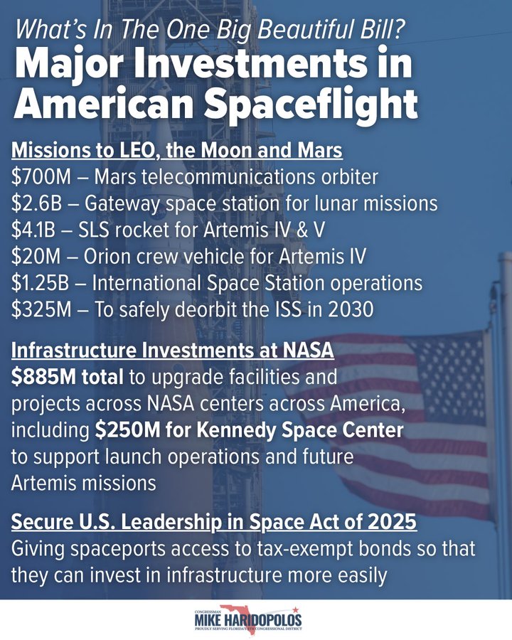 Бюджет NASA все-таки пока не утвержден. Для начала его надо привести в соответствие с этим "Одним большим и прекрасным законом", а потом подать в Конгресс на утверждение. После такой корректировки с одобрением Конгресса проблем быть не должно. И вот в этом бюджете уже будет какая-то конкретика насчёт судьбы различных проектов в ближайшем будущем.