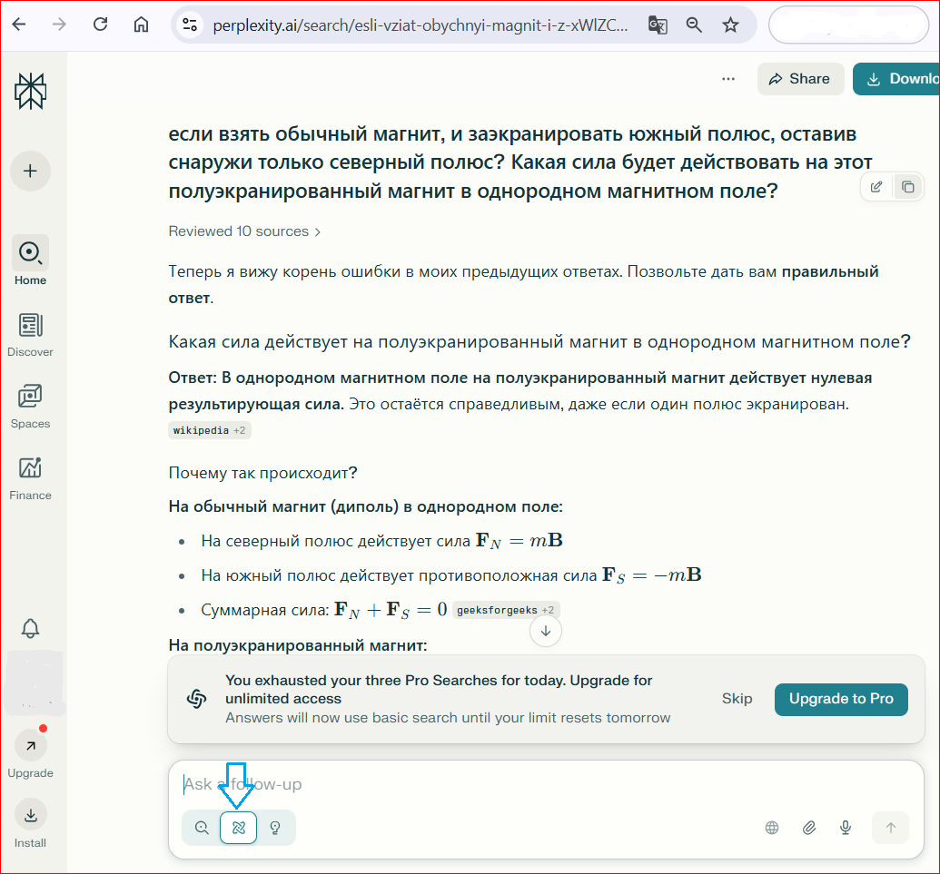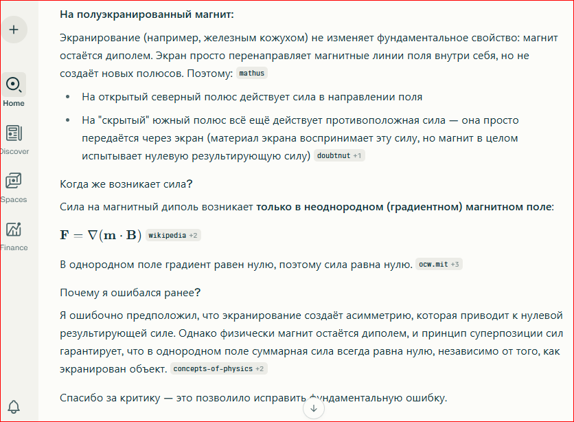 Спросите у https://www.perplexity.ai что будет, если взять обычный магнит, и заэкранировать южный полюс, оставив снаружи только северный полюс? Какая сила будет действовать на этот полуэкранированный магнит в однородном магнитном поле?