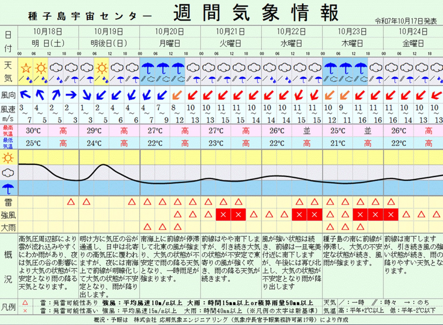 Прогноз погоды для Космического центра Танэгасима можно посмотреть на сайте JAXA!