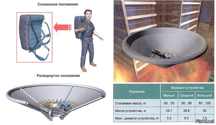 Вообще-то была идея создать ранец с надувным экраном для экстренного входа в атмосферу и посадки на Землю. Наверное что то типа этого