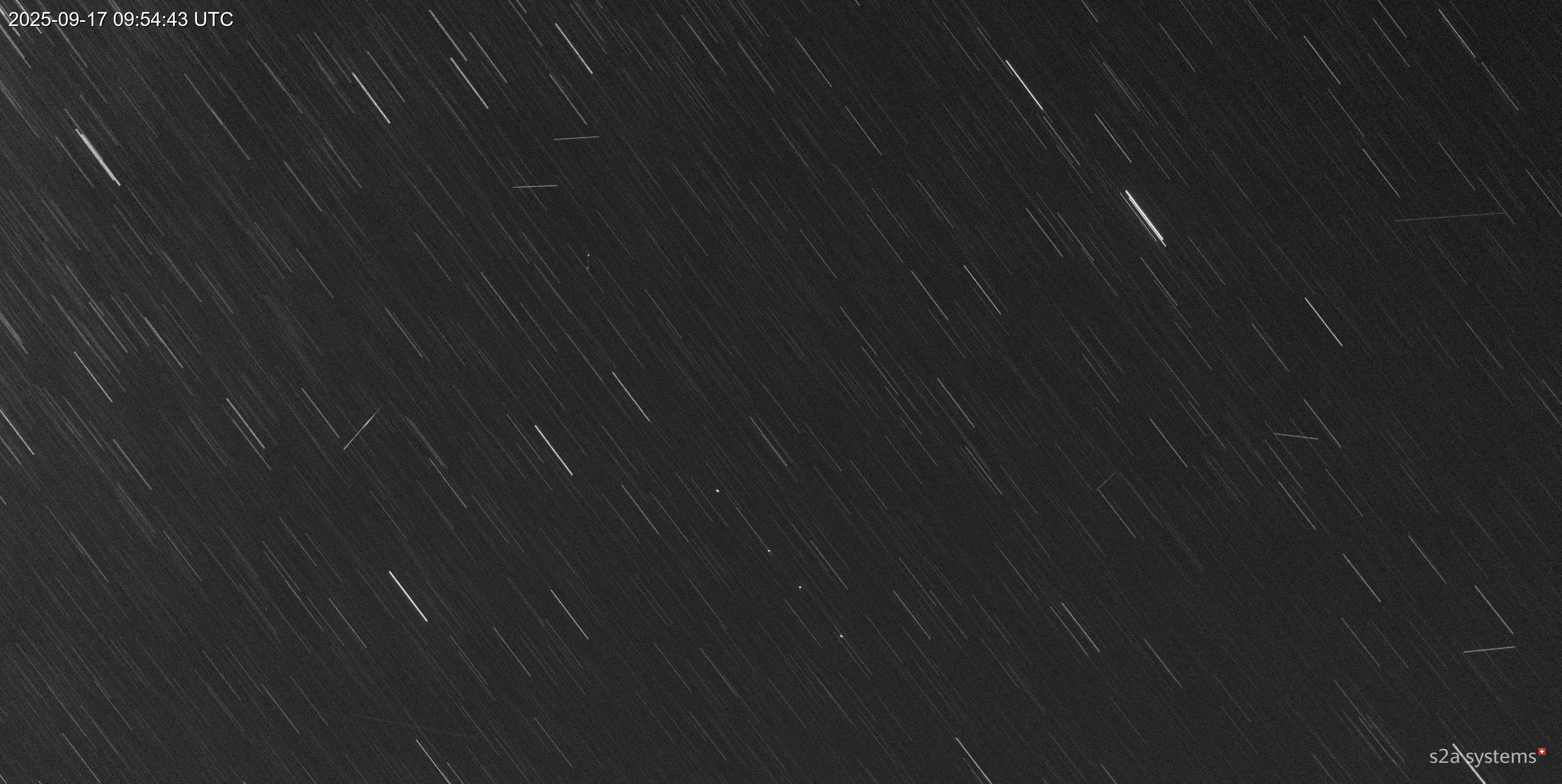 The four WHJSW test satellites... and heavy space traffic. Recorded today, 2025-09-17 at 09:54:43 UTC from Australia.