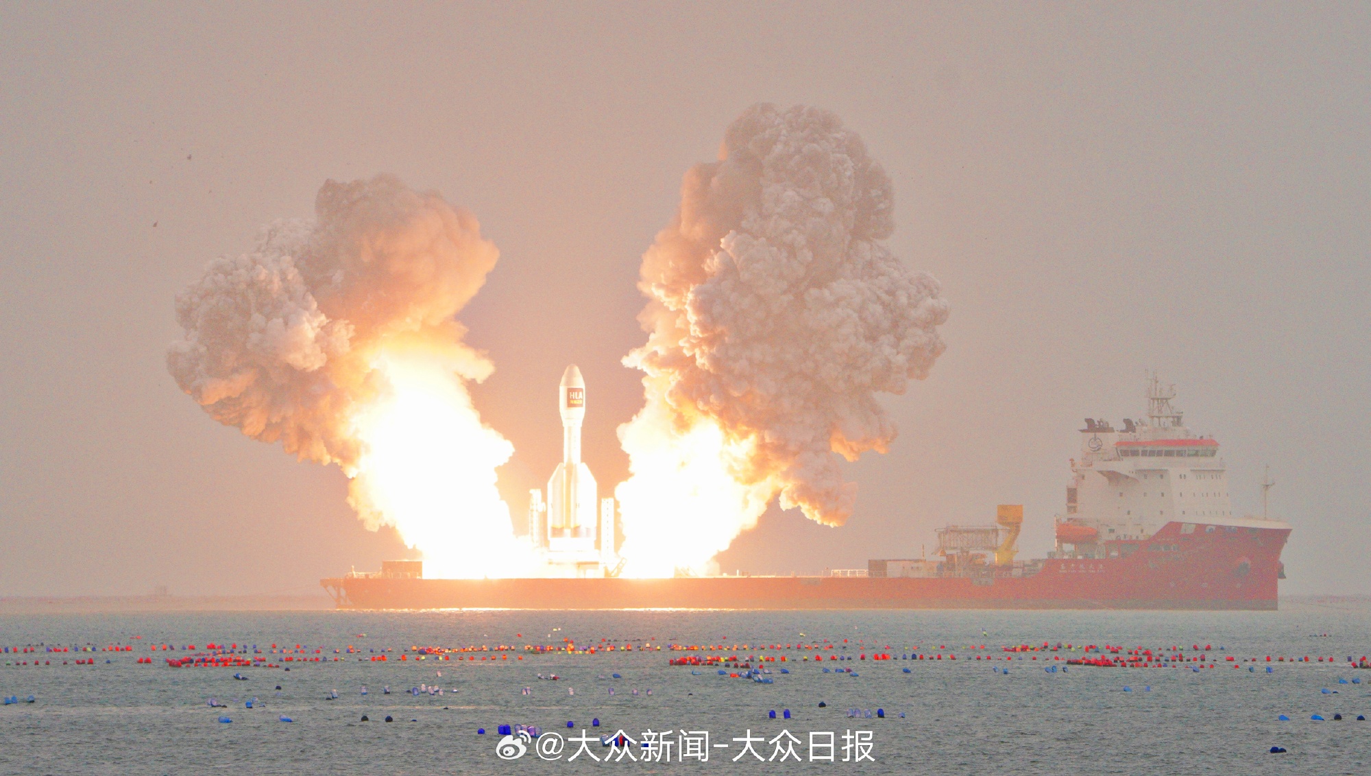 Powered by a solid-propellant core stage augmented by four solid strap-on boosters, the carrier rocket remarkably enhanced both stability and adaptability under heaving sea conditions.