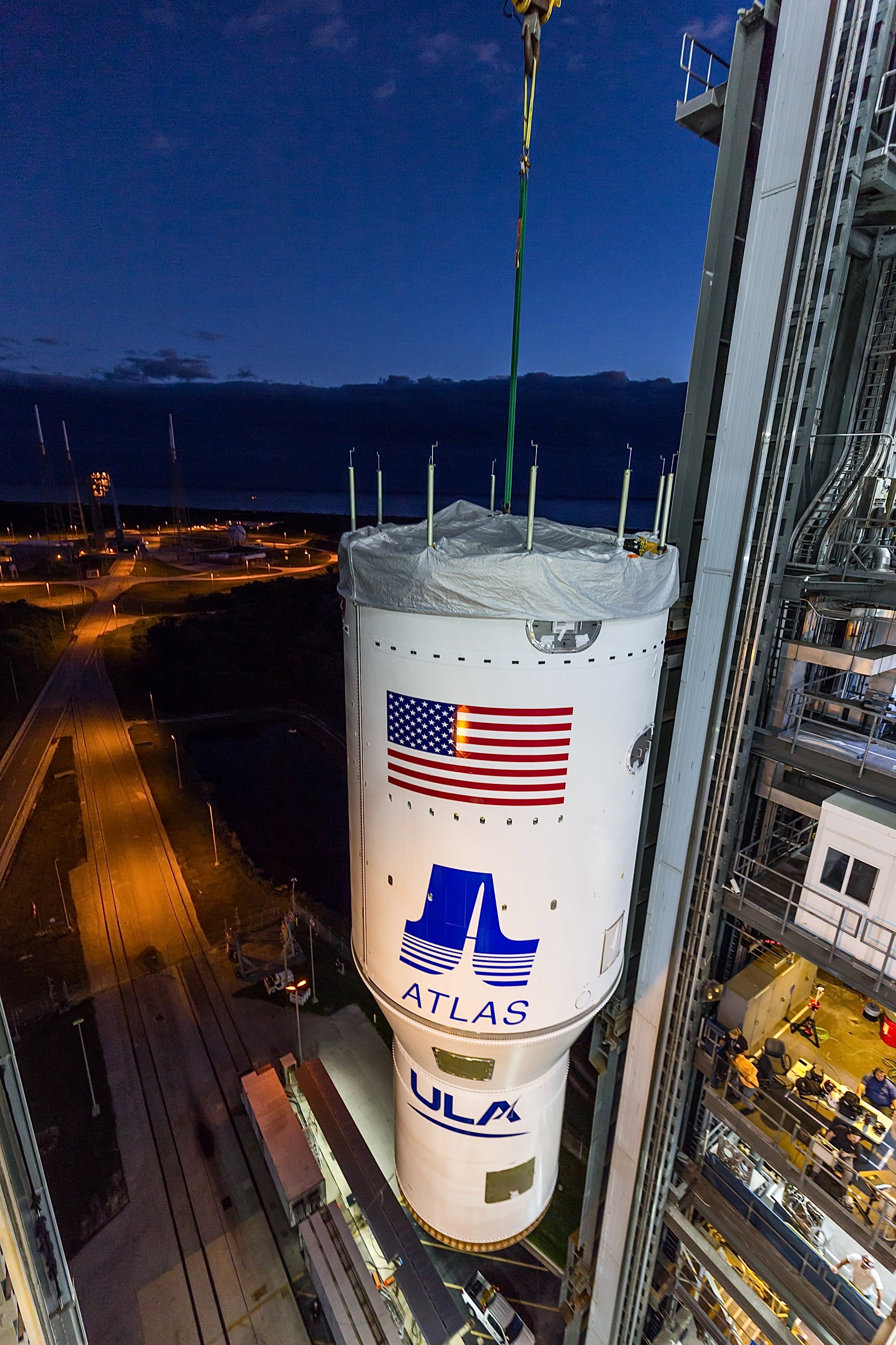 Encapsulated within a composite payload fairing, the satellite was hoisted atop the rocket on Oct. 28, completing another Atlas V 551 launch vehicle.