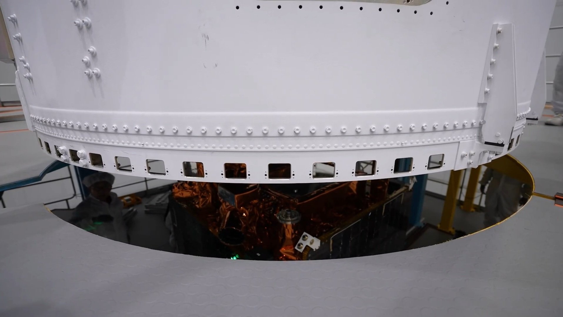 CAS500-3 and all 12 cubesats has been installed onto the Multiple Payload Adapter, and finally the fairing closed.