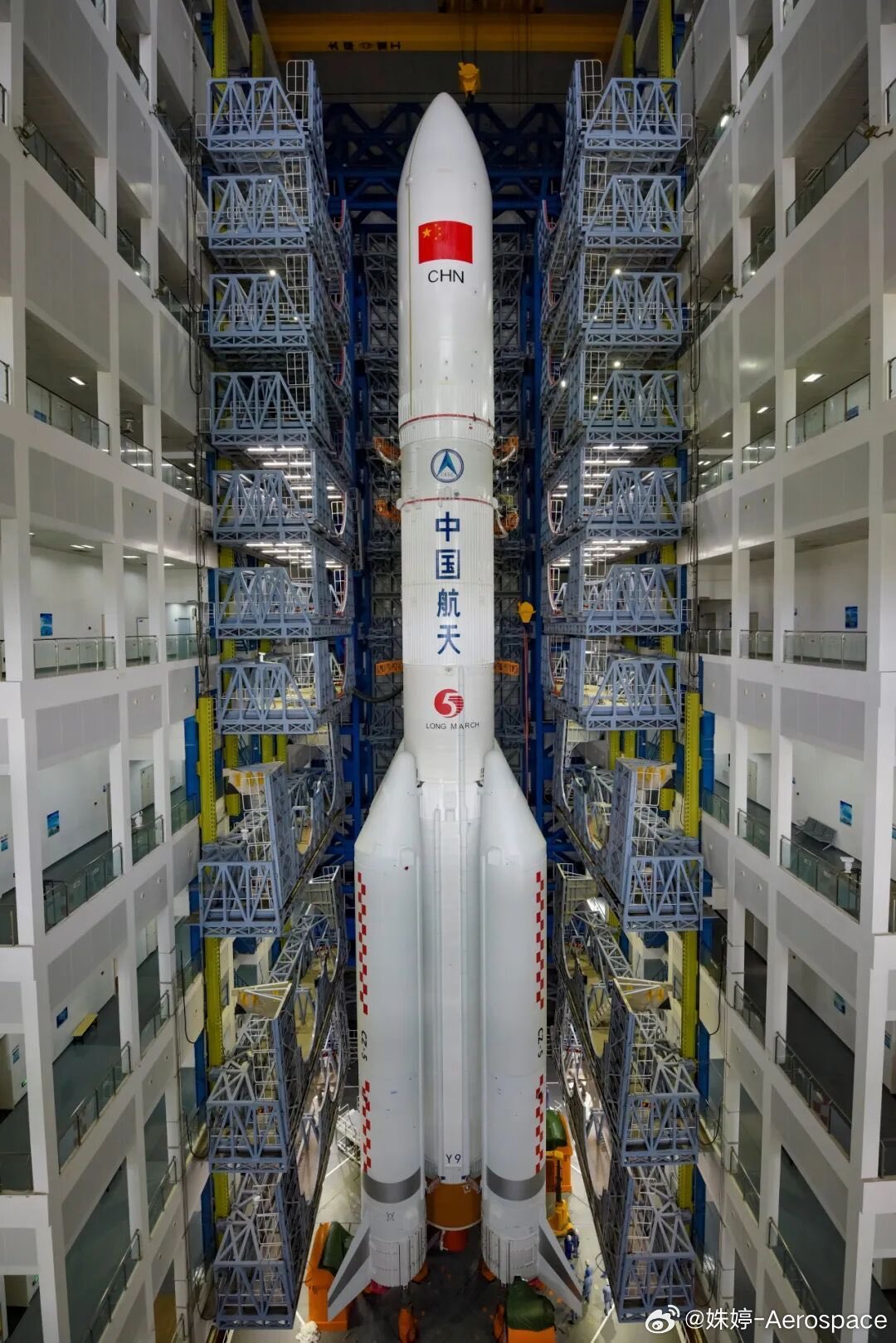 Long March 5 Y9 rocket successfully transported. The rocket features advanced cryogenic liquid fuel technology. Rocket stands at 63.2 meters tall with impressive specifications. Source:https://m.weibo.cn/status/Q9L4z6brF