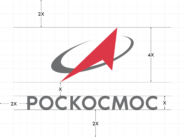 Основной вариант логотипа — вертикальная компоновка эмблемы и названия. При воспроизведении логотипа важно сохранять все пропорции и расстояния. Название «Роскосмос» воспроизводится фирменным шрифтом. Замена шрифта и изменение пропорций букв не допускается.