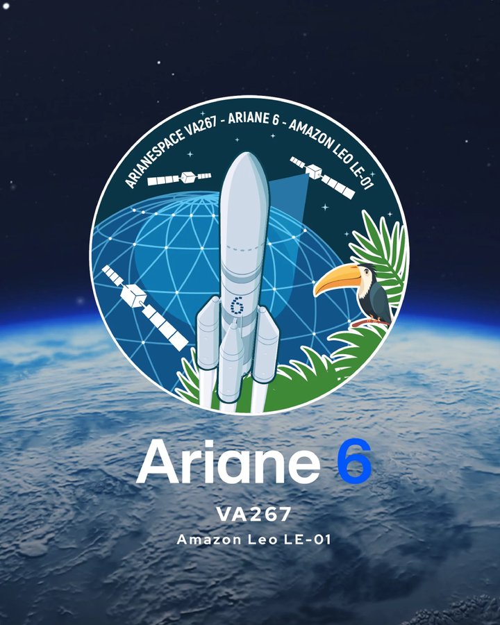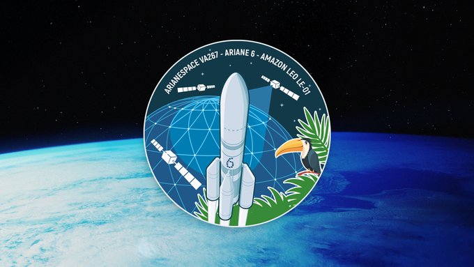 Arianespace unveils the official mission patch for the VA267 mission, dedicated to the first Ariane 6 launch of 32 @Amazonleo satellites into Low Earth Orbit.