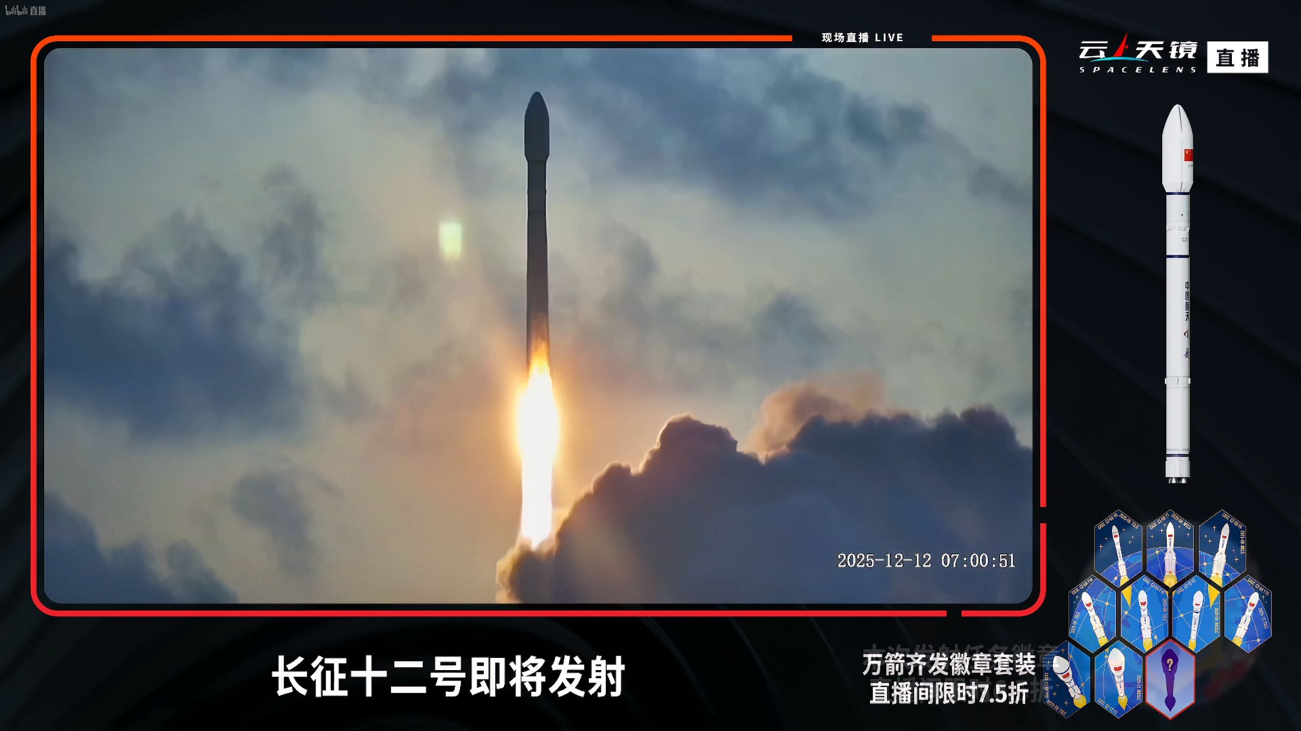WENCHANG, Hainan, Dec. 12 (Xinhua) -- China launched a Long March-12 carrier rocket on Friday in the southern island province of Hainan, sending a group of internet satellites into space.