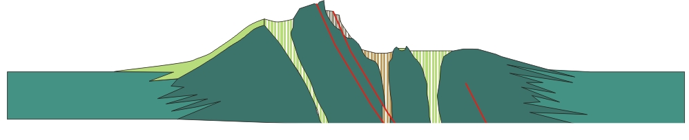 Разрез с северо-запада на юго-восток через вершину Husband Hill