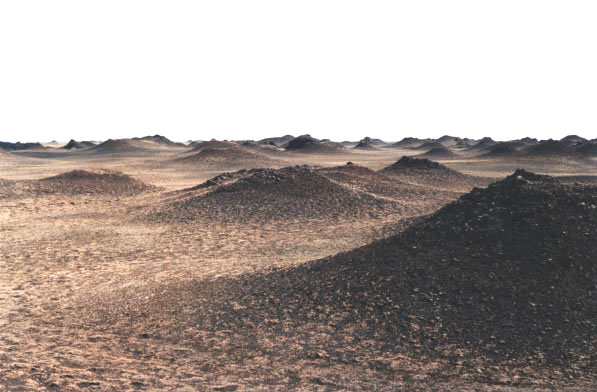 Closeup of the rootless cones south of Myrdalsjokull suggesting their similarity to small knobs and features on Mars. These cones are covered with scoria and in some cases spatter. They are spaced ~ 100 to several hundreds of meters apart and rise up to 20 m in height.