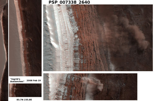 MRO "отловил" живой обвал льда (лавину?) в районе северного полюса. Процесс связыывают с весенним таянием воды: