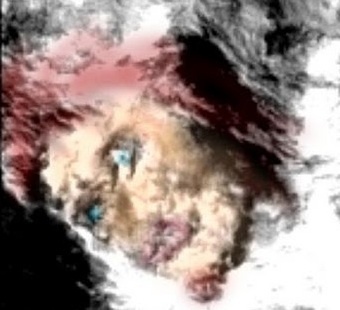 A tinted photo taken by a Mars probe shows the face of a pop star.