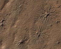 Martian gullies carved into hill slopes and the walls of impact craters were discovered several years ago. On Earth, gullies usually form through the action of liquid water -- long thought to be absent on the Martian surface. Whether liquid water carves gullies under today's cold and dry conditions on Mars is a major question that planetary scientists are trying to answer.