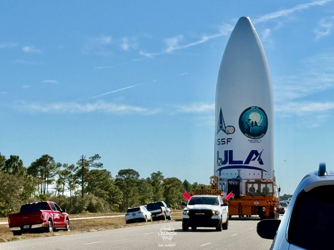 ULA is currently rolling out the fairing for USSF-87 to SLC-41 for stacking atop Vulcan! Inside should be 2 GSSAP satellites, as well as an ESPA-ring with smaller payloads. Launch is scheduled for NET Feb. 12, with lift-off reportedly around 08:00 UTC.