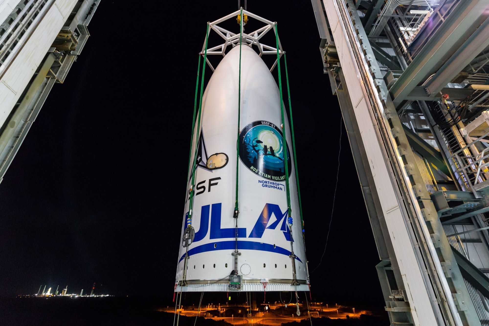The USSF-87 payload is hoisted atop Vulcan at VIF-G. Photo by United Launch Alliance