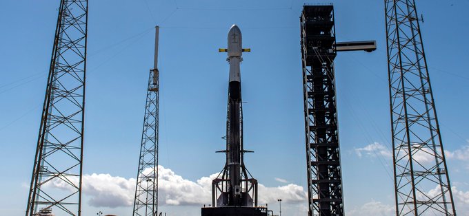 Falcon 9 is vertical at pad 40 in Florida ahead of tonight's launch of the @EchoStar XXV mission. Liftoff is now targeted for 12:19 a.m. ET, and weather is >95% favorable