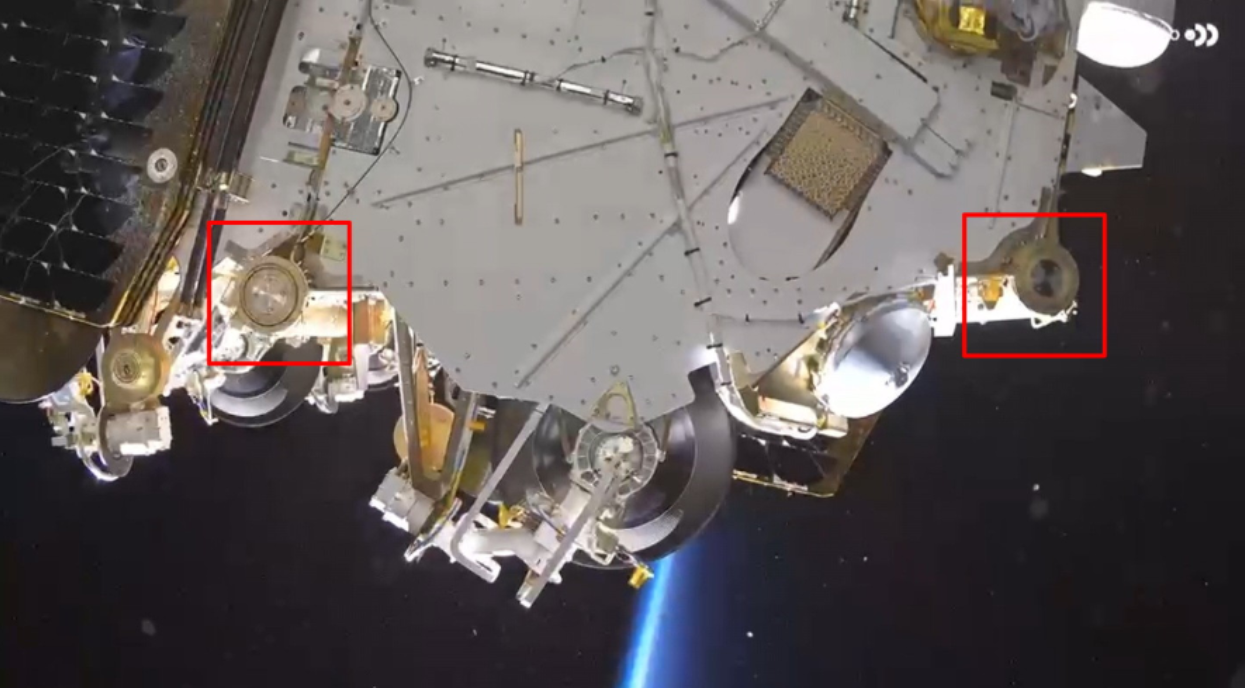 Пометил я крепления (два из четырех), которыми спутники крепятся друг к другу, у Рассветов таких по 4 штуки на спутник, у ранних старлинков было по 3 (см. первое фото).