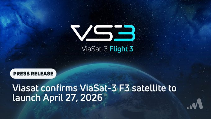 The scheduled launch date for ViaSat-3 F3 is confirmed for April 27, 2026, during an 85-minute launch window opening at 10:21 a.m. EDT!