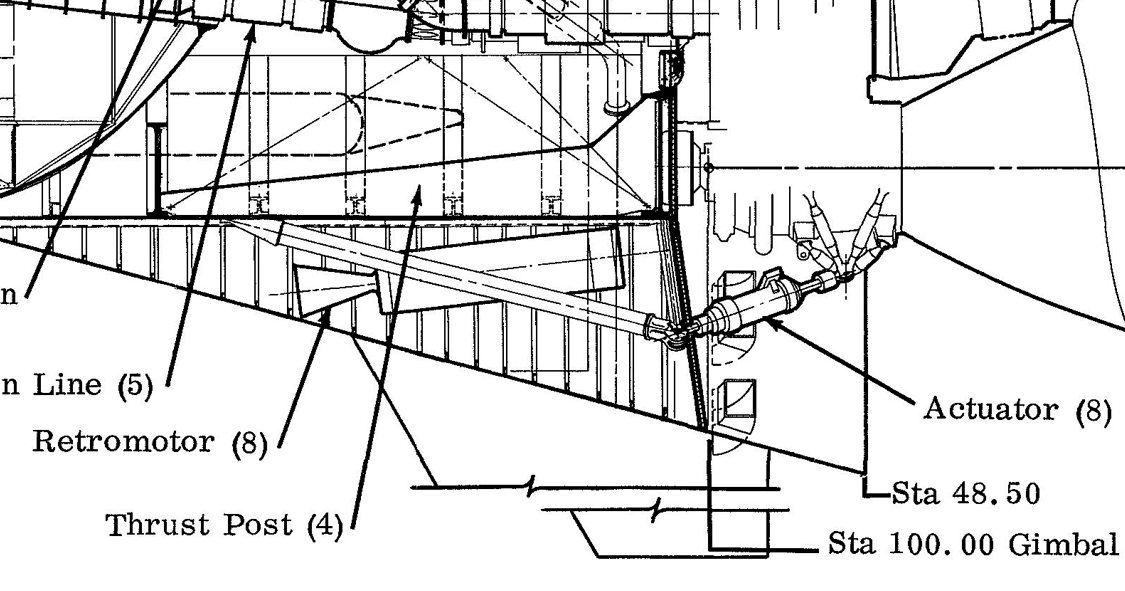 Тут мяукнул я в одном месте, и вдруг поехало. Мне показали работу, собранный из бумажного набора двигательный отсек от Saturn V. Работа сделана очень качественно. Девушка делала. Я бы так не смог. Но вспоминаю, да и в сопроводительном тексте говорится, что в обтекателях внешних F-1 стояли тормозные РДТТ первой ступени. И помнится мне, что под сопла этих РДТТ я видел даже заглушки. А на модели их нет. Вот я и мяукнул. А после этого полез по своим архивам. Чертеж с расположением этих РДТТ я нашел быстро. А вот ни чего подобного на заглушки я на имеющихся у меня фото и схемах не обнаружил... Гладко там все, да еще по наружи лонжероны проложены. Вот теперь и вопрос, как эти РДТТ работали. За МЯУ надо отвечать... ;D
