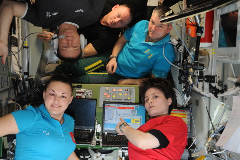 У нас все хорошо, пребываем в хорошем настроении и самочувствии. Конечно, прошедшая среда была непростой, но мы молодцы – действовали слаженно и без паники. На фотографиях вся команда после закрытия люков, а также центральный пост во всей своей иллюминации и управляющие лэптопы.