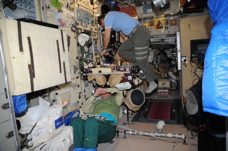 Целый день мы находились в нашем российском сегменте. Все лучшее было предложено ребятам, напоили, накормили... Сейчас уже каждый житель МКС находится в своем сегменте.