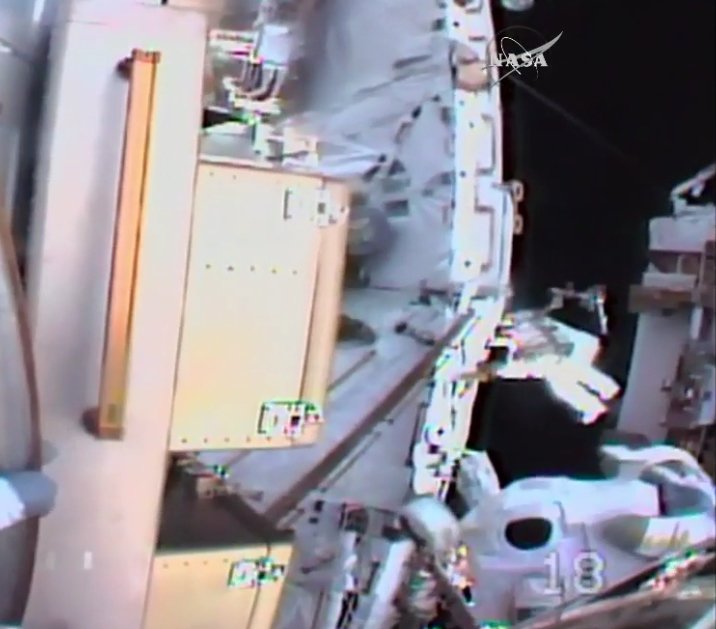 Кимброу также установил на многофункциональной ферме новую релейную коробку под компьютер с более совершенным программным обеспечением, предназначенным для стыковочного адаптера. Песке провел осмотр клапана радиатора на предмет утечки аммиака, которая, по данным NASA, за последние дни увеличилась. Француз во время поиска микроскопической трещины, через которую охлаждающее вещество проникало наружу, снимал каждый свой шаг на камеру GoPro. Отснятый материал будет затем еще раз просмотрен без помех на станции и на Земле.