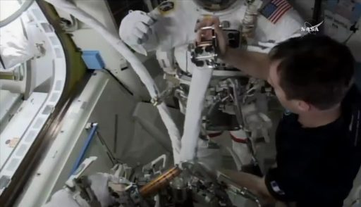 Thomas Pesquet working with the single remaining SCU – Photo: NASA TV
