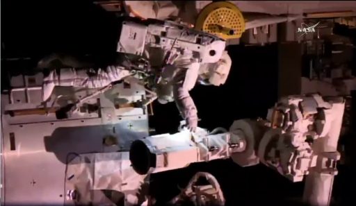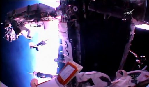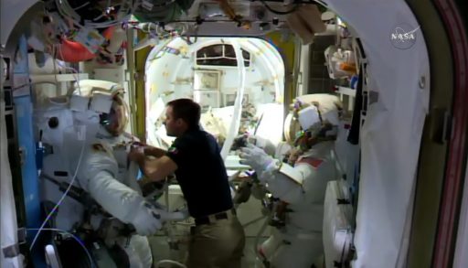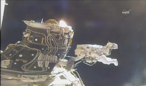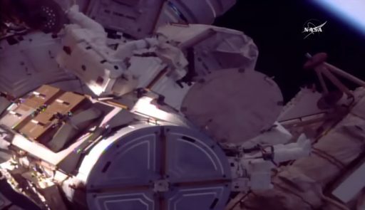 The EVA start time was marked at 13:08 UTC when the airlock had reached vacuum and Jack Fischer – who was connected to the SCU – switched his space suit to battery power. Peggy Whitson, venturing out on her ninth EVA, was first out of the airlock before the ExPCA was moved outside and first-time spacewalker Jack Fischer also climbed out for the usual checks of suits and tethers before getting to work.
