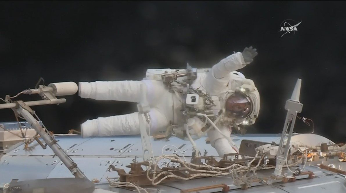 .@Astro2fish has finished installing 2 antennas on the Destiny module. #spacewalk