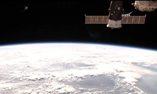 Progress MS-06 shows up in the Station's rear view mirror – Photo: NASA TV