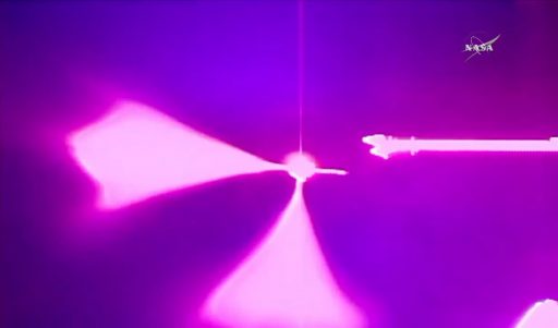 Progress fires its thrusters during ISS Approach – Image: NASA TV