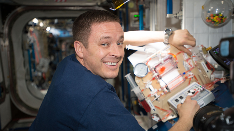 Fischer later checked out protein crystals through a microscope for an experiment researching radiation damage, bone loss and muscle atrophy caused by living in space. At the end of the day, he swapped out samples that were heated up inside the Electrostatic Levitation Furnace. The furnace is a facility that allows safe observations and measurements of materials exposed to extremely high temperatures.