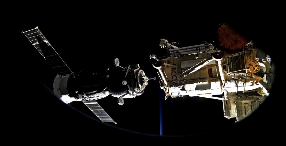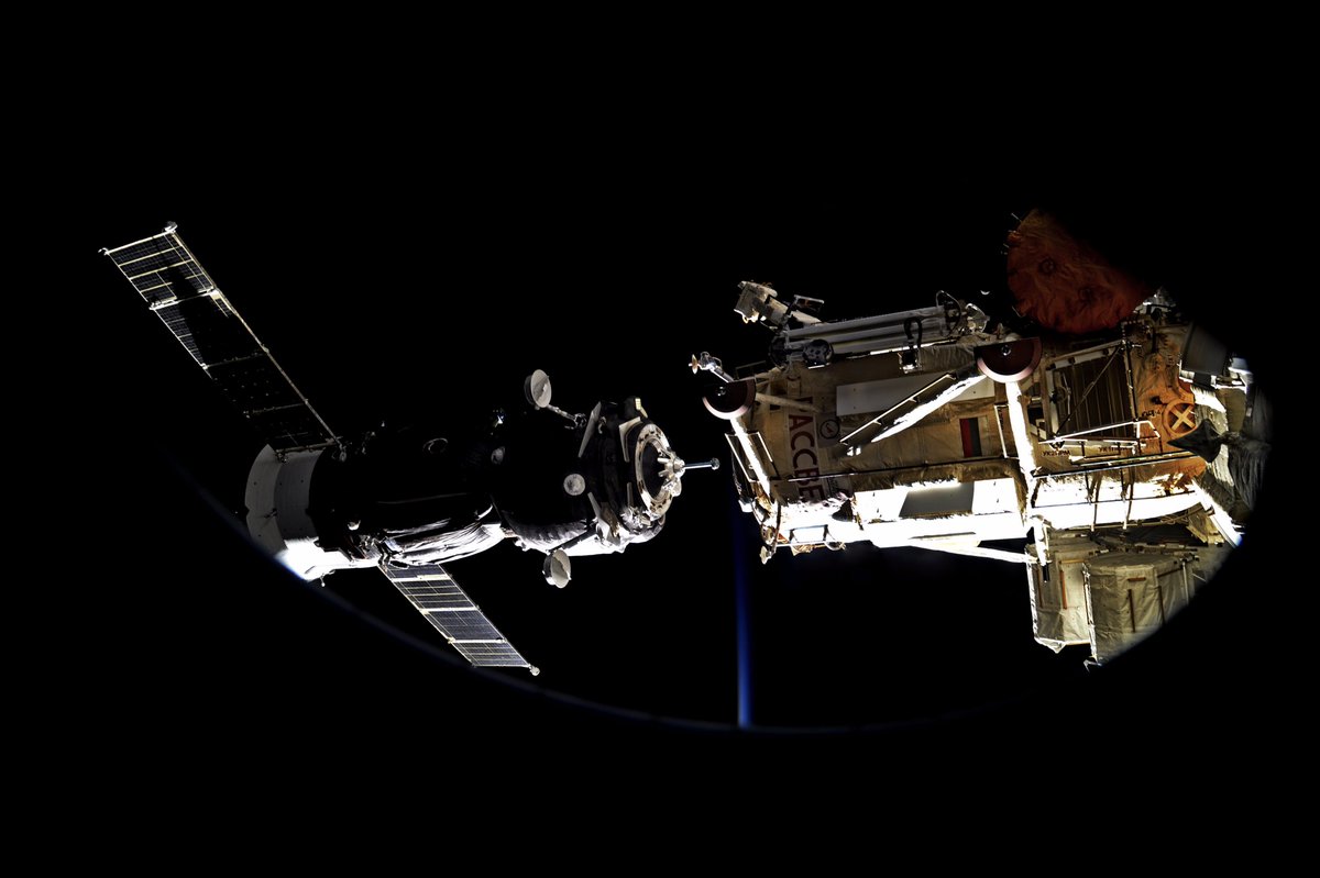Image of our Soyuz captured by our @Space_Station Commander just seconds before contact.