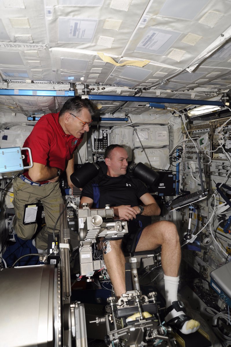 Astronauts Randy Bresnik and Paolo Nespoli are barely a week into their 4-1/2 month long mission and are already exploring what space is doing to their bodies. The astronauts took ultrasound scans of their legs today to assess the changes their leg muscles and tendons are undergoing. The data will later be compared to the condition of their muscles before and after their spaceflight mission.