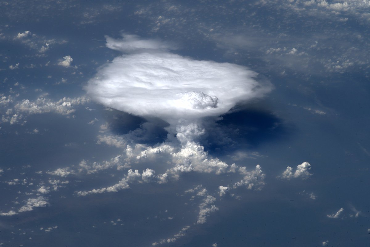 The shadow of this thunderstorm over central India, visible even from 250 miles high. Had to be much taller than Everest, it was massive!
