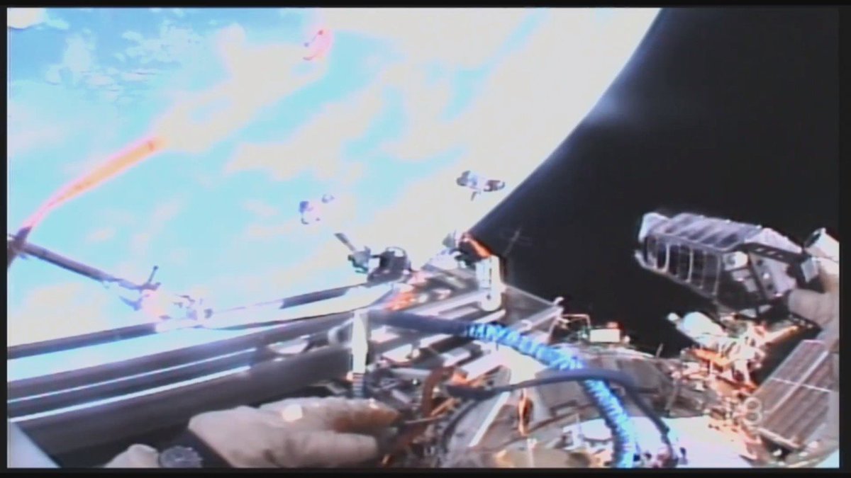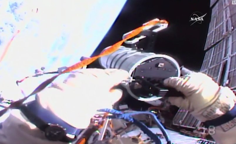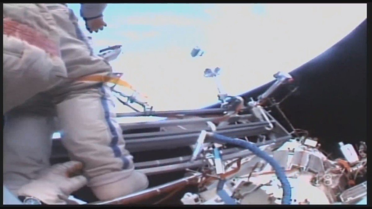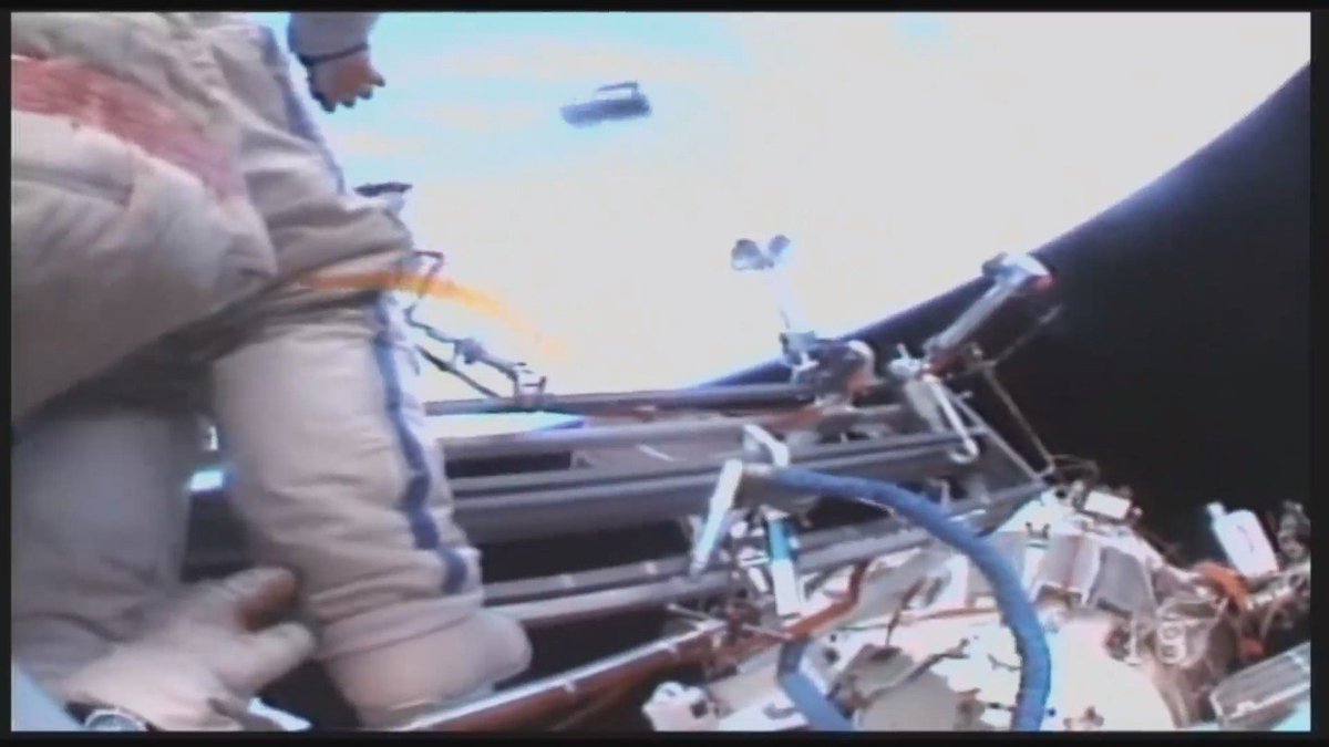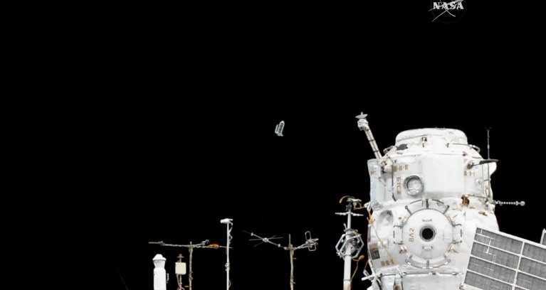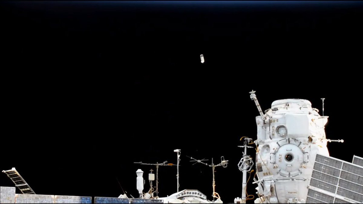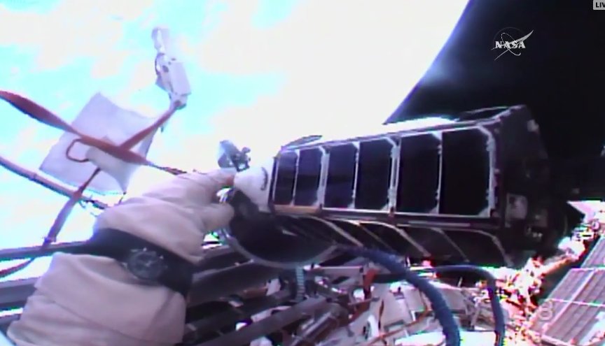 .@SergeyISS manually deploys a nanosatellite into Earth orbit to celebrate 60 years of Russian space program. https://www.nasa.gov/live