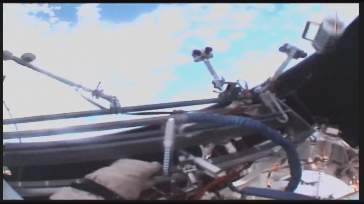 Photos of SKK have been collected, Mission Control instructing the crew to take a short break before translating around to hand rail 2614.