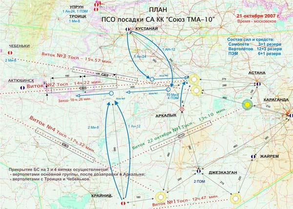 21октября 2007 года в 14 часов 36 минут московского времени (10:36 GMT) двое членов экипажа пятнадцатой основной экспедиции на МКС – Федор Юрчихин и Олег Котов и участник космического полета Шейх Музафар возвратились на Землю.