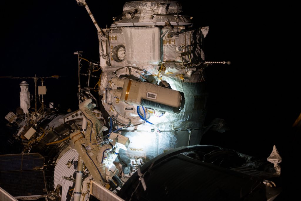 Cosmonauts Fyodor Yurchikhin, completing his ninth career spacewalk, and Sergey Ryazansky, venturing into the void for the fourth time, spent seven hours and 34 minutes working outside the International Space Station on August 17, 2017. Russian EVA-43 tested an upgraded version of the Orlan spacesuit, deployed various exposure experiments to study the effect of thruster residue on different materials, collected surface samples from the Russian segment, installed hand rails and structural struts and deployed five small satellites for different applications including atmospheric science, amateur radio and technology demonstrations.